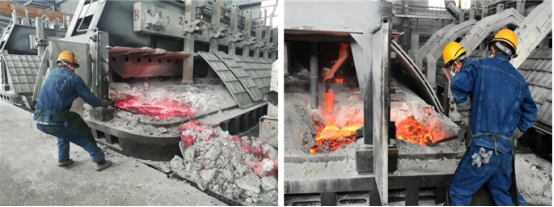 鏡頭三:電解車間"更換陽極作業(yè)"比武現(xiàn)場,兩車間選派了業(yè)務能力最強人員組成參賽隊對抗比拼。面對電解槽滾滾熱浪,每一名選手都沉著冷靜、從容應對;他們密切配合、張弛有度,按照操作規(guī)程有序進行……