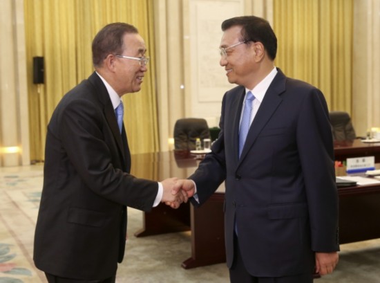 李克強(qiáng)總理會(huì)見聯(lián)合國(guó)秘書長(zhǎng)潘基文時(shí)說:"人類面臨的最大挑戰(zhàn),是在處理'減貧'和'應(yīng)對(duì)氣候變化'兩個(gè)問題的過程中,取得一個(gè)平衡點(diǎn)。"