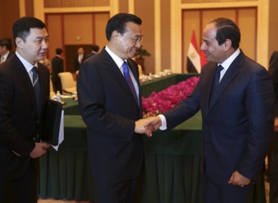 李克強(qiáng)總理會(huì)見埃及總統(tǒng)塞西,就對(duì)方希望"加強(qiáng)反恐合作"提議表示:"我們既要加強(qiáng)反恐合作,也要妥善解決熱點(diǎn)問題,更要高度重視發(fā)展經(jīng)濟(jì),以鏟除恐怖主義傳播的土壤。"