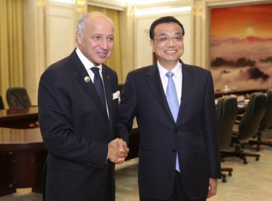李克強(qiáng)總理會(huì)見法國(guó)外長(zhǎng)法比尤斯時(shí)說:"希望把中法第三方合作和核能合作做成'南北合作'的示范項(xiàng)目,做成推動(dòng)世界經(jīng)濟(jì)向復(fù)蘇方向前行的引導(dǎo)性項(xiàng)目。"
