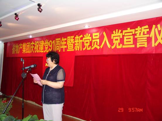 我宣誓:"我志愿加入中國共產(chǎn)黨,擁護(hù)黨的綱領(lǐng),遵守黨的章程,履行黨員義務(wù),執(zhí)行黨的決定,嚴(yán)守黨的紀(jì)律,保守黨的秘密,對(duì)黨忠誠,積極工作,為共產(chǎn)主義奮斗終身,隨時(shí)準(zhǔn)備為黨和人民犧牲一切,永不叛黨"。6月29日上午10∶00時(shí),17名新加入黨組織的中國共產(chǎn)黨預(yù)備黨員、所屬各黨組織書記、老黨員代表等30余人的莊嚴(yán)宣誓,標(biāo)志著青海物產(chǎn)系統(tǒng)慶祝建黨91周年系列活動(dòng)正式展開。